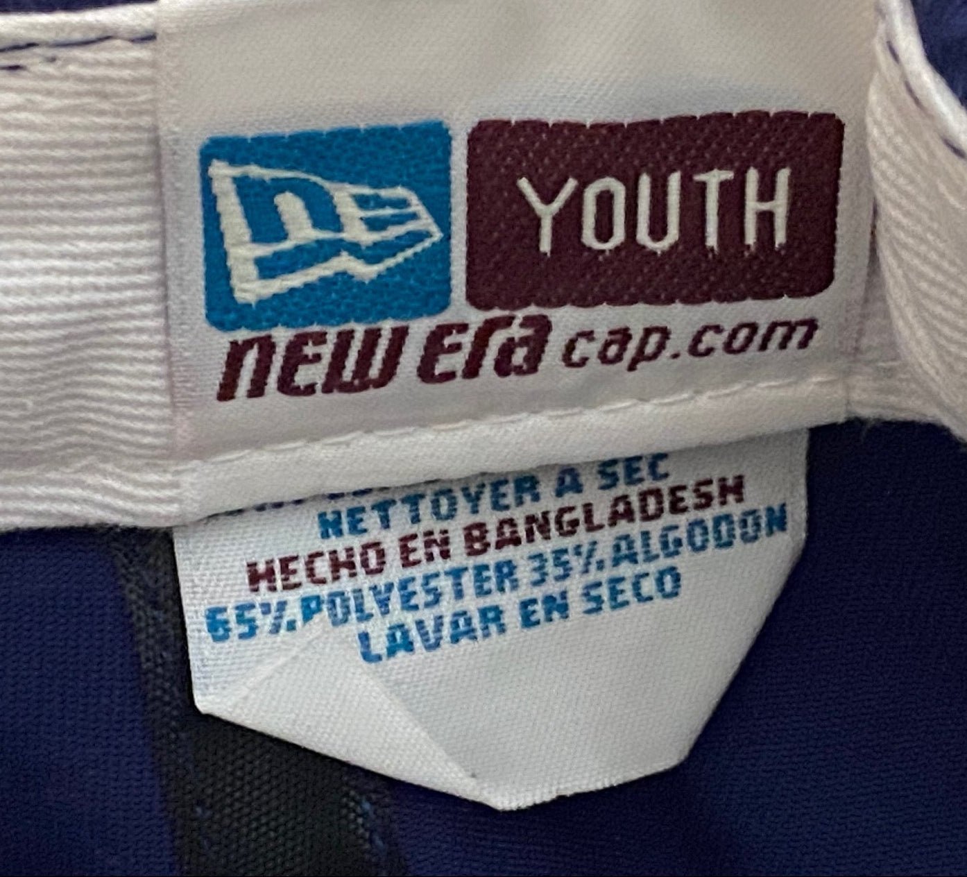 Both the adult and youth caps have a curved bill, while the youth size caps are 65% Polyester/35% Cotton, and were made in Bangladesh, and the adult caps are 100% cotton and were made in China.