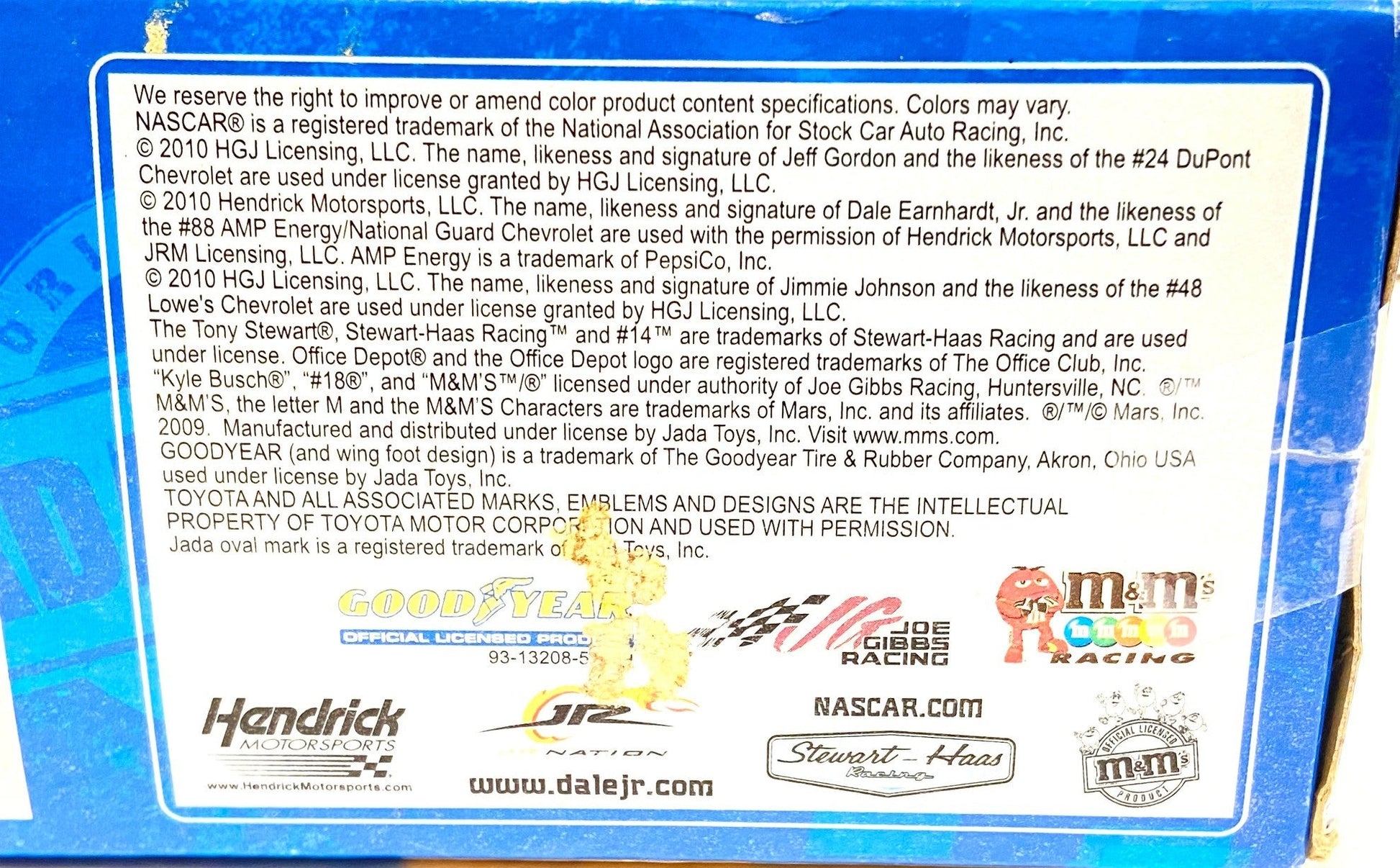 Attention all NASCAR fans! Get ready to race with Jeff Gordon #24's 2010 Motorized 1:43 Pull-Back Vehicle from Jada Toys. Don't let the fact that it's a used item deter you, as the contents are in excellent condition. However, the box has wear and tear, with yellowed plastic and some taped spots. But if you're all about the car and not the box, then this is the perfect addition to your collection. But be warned, this item is in high demand, so act fast and secure your piece of NASCAR history today!