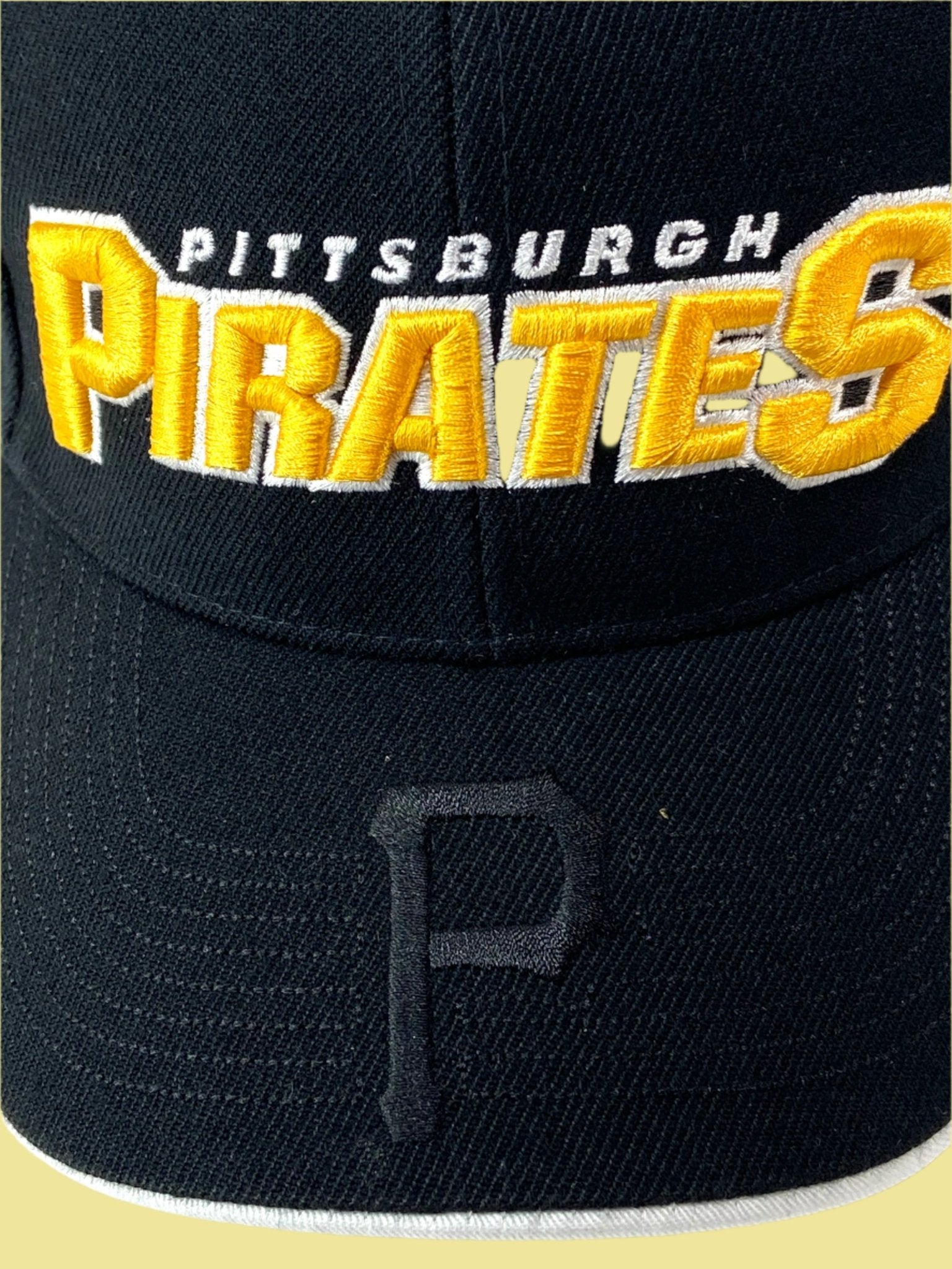 Introducing the "Black P" cap by Drew Pearson - it's a must-have for any dedicated Pirates fan! Made with 20% wool and 80% polyester, this NOS (New Old Stock) cap features stunning 3D embroidery, an adjustable hook and loop closure, and original tags. Don't miss out on this awesome cap that will surely ignite excitement in any fan. Take a look at the photos and see if you can spot the "Black P". Made in China, one size fits all.